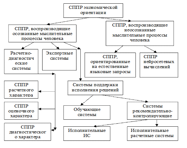 На рис. 1 показано, что СППР первого класса экономической направленности делятся на три подкласса: