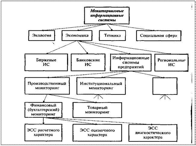 На рис. 2 представлена общая классификация мониторинговых информационных систем, причем классификационное дерево заполнено лишь для экономического мониторинга. Методология экономического мониторинга рассматривает следующие классы систем: