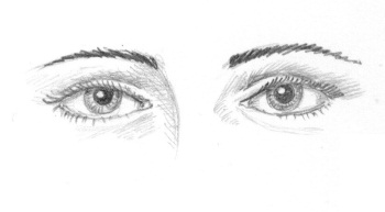Глаза и брови Глаза человека представляют собой сферу (глазное яблоко), расположенную в глазной впадине (глазнице) и покрытую веком. Художник всегда должен помнить о том, что глаза имеют сферическую форму и симметричны.