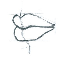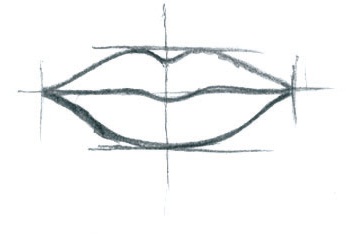 Верхняя губа имеет характерную выемку посередине, она немного длиннее нижней, а нижняя, более пухлая, также имеет небольшое углубление посередине. При рисовании губ следует учитывать два фактора: во-первых, они разделены (когда рот закрыт) волнистой линией, которая может быть более прямой или более изогнутой в зависимости от того, расслаблены губы или крепко сжаты; во-вторых, относительная полнота каждой губы является характерной особенностью: чем пухлее губы, тем более тёмными должны быть изображены их уголки.