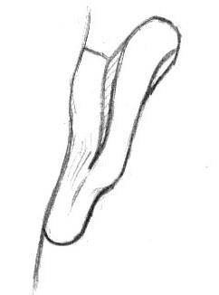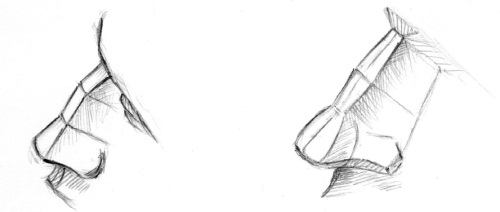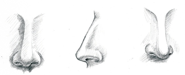 Hoc При изображении головы нарисовать профиль носа очень просто. Однако значительно сложнее сделать это при изображении человека с поворотом лица в три четверти или анфас. Ключом к изображению носа, когда он не представляет собой чёткий профиль, является буквальное копирование участков света и тени с учётом следующих факторов. Во-первых, нижняя часть носа затенена. Во-вторых, на переносице всегда есть удлинённая светлая область, которая позволяет изобразить рельеф (рис. 17.10).