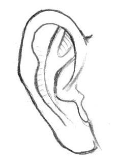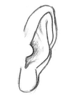 При изображении лица анфас помните о контуре раковины, который у разных людей выступает более или менее значительно.