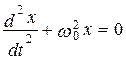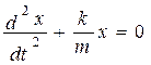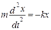 Спроектируем уравнение движения на ось X, при этом учтем, что сила упругости пропорциональна смещению из положения равновесия и направлена в сторону ему противоположную, а ускорение - это вторая производная координаты по времени. Тогда: