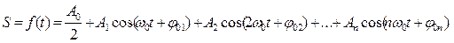 Любые сложные периодические колебания S = f(t) можно представить в виде суперпозиции одновременно совершающихся гармонических колебаний с различными амплитудами, начальными фазами, а также частотами, кратными циклической частоте w0: