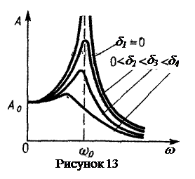 Зависимость амплитуды вынужденных колебаний от частоты вынуждающей силы показана на рисунке 13. Отдельные кривые на графике