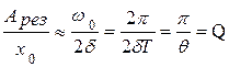 Таким образом, добротность Q показывает, во сколько раз амплитуда в момент резонанса превышает смещение системы из положения равновесия под действием постоянной силы той же величины, что и амплитуда вынуждающей силы (это справедливо лишь при небольшом затухании).
