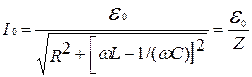 где Iо - амплитуда переменного тока в контуре, j - сдвиг фаз между э.д.с. источника тока и силой тока. По аналогии с определением формул (74) и (75) найдём выражения для Iо и j: