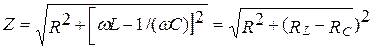 RC = 1/ (ωC) - ёмкостное сопротивление;