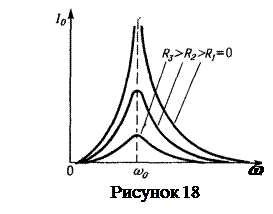 На рисунке 16 представлена векторная диаграмма амплитуд колебаний на всех элементах рассматриваемой цепи (см. рис. 15). Из выражения (86) следует, что амплитуда тока зависит от частоты вынуждающей э.д.с. (рисунок 18). Максимального значения I0 достигает при частоте ωрез, равной: