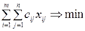 - количество продукции, перевезенной из пункта Аi в Bj. Тогда ММ КТЗ запишется в виде: