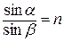 Закон преломления света: падающий и преломленный лучи, а также перпендикуляр к границе раздела двух сред, восстановленный в точке падения луча, лежат в одной плоскости. Отношение синуса угла падения α к синусу угла преломления β есть величина, постоянная для двух данных сред: