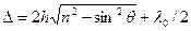 будет иметь знак минус; если же n < n0, то потеря полуволны произойдет в точке В и l0/2 будет иметь знак плюс. Так как ½ AB ½=½ BC ½ = 2 h /cosq', ½ AD ½=2 h tgq¢sinq (h – толщина пластинки, q и q¢ - углы падения и преломления на верхней грани; sinq = n sinq¢) то для разности хода получаем
