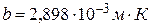 Это соотношение ранее было получено Вином из термодинамики. Оно выражает так называемый закон смещения Вина: длина волны λm, на которую приходится максимум энергии излучения абсолютно черного тела, обратно пропорциональна абсолютной температуре T. Значение постоянной Вина: