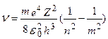 Различные возможные стационарные состояния атома, образованного из атомного ядра и электрона, определяются по Бору соотношением: