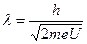 Рассмотрим еще один пример. Длина волны де Бройля для электрона, ускоренного разностью потенциалов U = 100 В, может быть найдена по формуле: