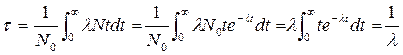Суммарная продолжительность жизни dN ядер равна t | dN | = lNtdt. Проинтегрировав это выражение по всем возможным t (т. е. от 0 до ¥) и разделив на начальное число ядер N0 , получим среднее время жизни t радиоактивного ядра: