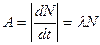Активностью А нуклида (общее название атомных ядер, отличающихся числом протонов Z и нейтронов N) в радиоактивном источнике называется число распадов, происходящих с ядрами образца в 1 с: