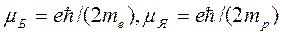 Если т = тe то, m0 —магнетон Бора mБ; если т = тр то получаем ядерный магнетон mя: