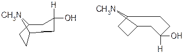 · -Сложный эфир спирта тропина и троповой кислоты, физиологическая активность соединений тропана зависит от стереоструктуры. Наиболее устойчивы две конфигурации пиперидинового цикла