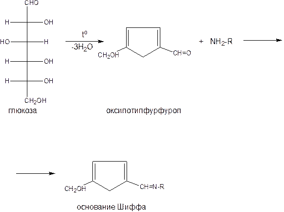 При взаимодействии с минеральными кислотами глюкоза превращается при нагревании в оксиметилфурфурол, который взаимодействует с анилином или прокаином, нанесённым на фильтровальную бумагу, которой накрывают пробирку, образуется основание Шиффа – светло-зелёного цвета.