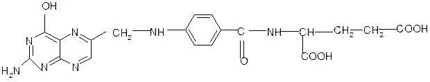 N-{4’-[(2-амино-4-окси-6-птеридил)-метил]-амино}-бензоил-L(+)-глютаминовая кислота.