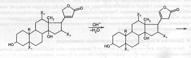 Сердечные гликозиды, как правило, являются нейтральными соединениями. Они чувствительны к воздействию как кислот, так и щелочей. Под влиянием кислот, даже таких слабых, как уксусная, происходит отщепление легко гидролизуемых 2-дезоксисахаров, являющихся составными компонентами сердечных гликозидов. В щелочной среде происходит необратимая изомеризация карденолидов или расщепление лактонного цикла с образованием фармакологически неактивных соединений. Под влиянием щелочи в лактонном цикле может происходить перемещение двойной связи из