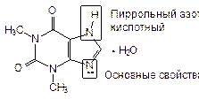 Ввиду наличия незамещенных атомов водорода в положении 1 или 7 при растворении теофиллина и теобромина в щелочах происходит образование солей. Теофиллин и Теобромин – амфотерные соединения.