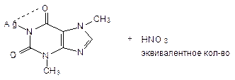 в) Теофиллин после щелочного гидролиза (в 30% растворе NaOH при нагревании) превращается в теофиллидин, который всупает во взаимодействие с солью диазония, образуя азокраситель красного цвета.