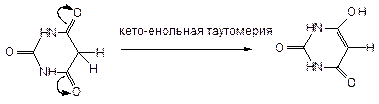 Барбитураты (фенобарбитал и бензонал) являются не солями барбитуровой кислоты, а замещеннми по 5-му положению производными (протон в положении 5 подвижен). Подвижность протонов в 5-ом положении связана с перераспределением электронной плотности на рядом стоящие кислороды в 4-м и 6-м положении, что дает возможность существования барбитуровой кислоты в енольной форме: