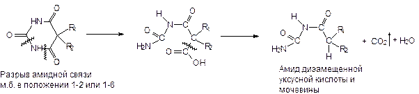Барбитураты - достаточно нестойкие соединения и при хранении подвергаются гидролитическому расщеплению: