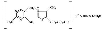 3) Химическое название: 4-метил-5-b-оксиэтил-N-(2'-метил-4'-амино-5'-метилпиримидил)-тиазолий бромида гидробромид полугидрат