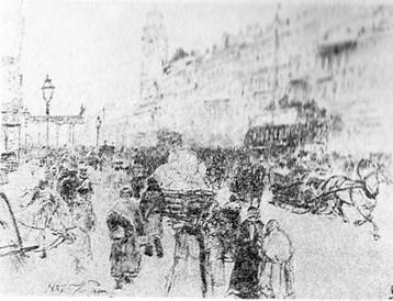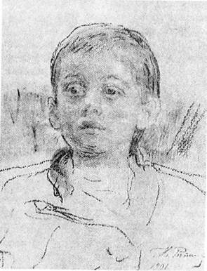 Великий художник России Илья Ефимович Репин не только много рисовал, используя разнообразные техники, но и создал немало шедевров рисунка. Будучи живописцем, он и в рисунке мыслил живописными категориями. Достаточно убедиться в этом помогут два блестящих его рисунка: «На Невском проспекте» (рис. 4) и «Детская головка» (рис. 5).