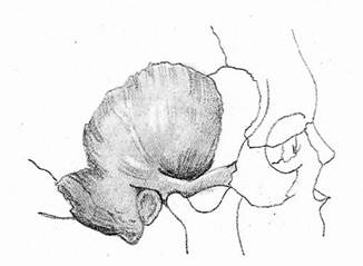 Быстро взглянув на натуру, зафиксируйте свое внимание на двух-трех точках, которые чисто условны, но станут своеобразными «центрами сосредоточения взгляда». Результатом здесь оказывается вдруг обнаружившаяся способность видеть всю конфигурацию черепа. Такое «видение» натуры сразу, целиком, не позволяет переключаться на какую-либо подробность, отвлекающую от общего.