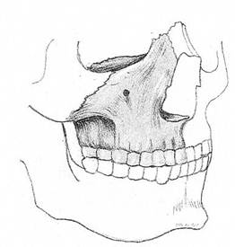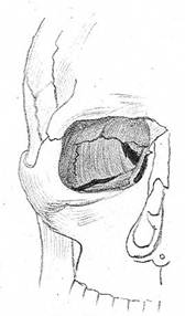 Свою роль в пластике лица человека играет парная скуловая кость, влияющая в значительной мере на поперечный размер головы. Сращенная вверху с лобной, а на передней поверхности с верхнечелюстной костями, скуловая образует наружную стенку глазной впадины (рис. 49). Сзади скуловая кость сращена с клиновидной и височной и участвует в образовании скуловой дуги.