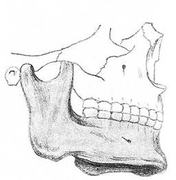Нижнечелюстная кость наряду с лобной играет большую роль в пластическом устройстве лица. Непарная, она имеет тело подковообразной формы, на передней поверхности которого посередине есть подбородочное возвышение, несколько ниже которого по обе стороны располагаются подбородочные бугорки.