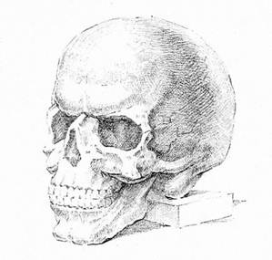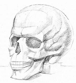 Рассмотрим работу над рисунком черепа более подробно, в ее последовательности, во взаимосвязанности всех этапов.