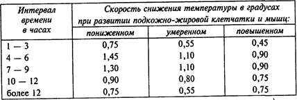 Исследование трупных пятен. Время наступления смерти определяется на основе наличия трупных пятен, их способности бледнеть и исчезать при надавливании с учетом условий, влияющих на скорость появления и интенсивность трупных пятен, количества и состояния крови (густая или жидкая), причин, обусловливающих то или иное ее состояние (болезнь, отравление, травма). Так, при асфиксии, сепсисе и ряде других состояний, при которых кровь остается жидкой, трупные пятна возникают быстро и обычно резко выражены. При густой крови трупные пятна выявляются медленно. Очень быстро появляются трупные пятна при смерти от отравления окисью углерода (переход в стадию имбибиции наблюдается уже к концу суток). Причина — сильное разжижение крови (отек). На скорость появления трупных пятен влияет и температура окружающей среды.
