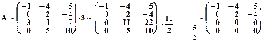 Получили трапецевидную матрицу с двумя ненулевыми строками. Значит, r(A) = 2.