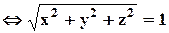 Обычно полученное уравнение заменяют равносильным ему, возводя в квадрат: x2 + y2 + z2 = 1.