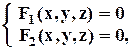 где уравнения F1(x, y, z) = 0, F2(x, y, z) = 0 задают поверхности, пересекающиеся по данной кривой. Однако параметрический способ во многих случаях удобнее.