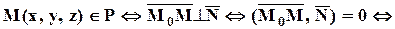 – некоторый ненулевой вектор, M0(x0, y0, z0) –точка. Плоскостью Р называется множество точек M таких, что векторы