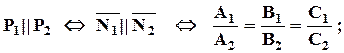 Запишем в краткой, символической форме условия параллельности и перпендикулярности плоскостей:
