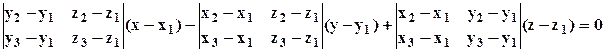 В качестве точки плоскости для записи уравнения можно взять любую из точек M1, M2, M3. Возьмём, например, M1 :