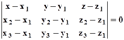 Как известно, через любые 3 точки, не лежащие на одной прямой, можно провести единственную плоскость. Научимся решать эту важную задачу в общем виде, а затем рассмотрим пример. Пусть точки M1(x1, y1, z1), M2(x2, y2, z2), M3(x3, y3, z3) не лежат на одной прямой.