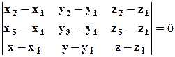 Приведём другой способ вывода уравнения плоскости, проходящей через 3 данные точки. Пусть M(x, y, z) – произвольная (текущая) точка. Очевидно, M лежит на плоскости тогда и только тогда, когда векторы