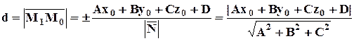 M0(x0, y0, z0) до плоскости Ax + By + Cz + D = 0.