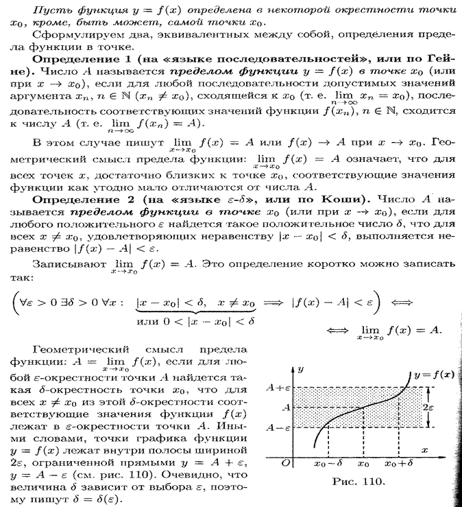 Число А 1 называется пределом функции у = f(x) слева в точке х0, если для любого число ε > 0 существует число δ = δ(ε) > 0 такое, что при х € (х0 —δ; х0), выполняется неравенство |f(х) — A1| < ε. Предел слева записывают так: lim f(x) = А1 или коротко: f(хо — 0) = А1 (см. рис. 111). х→х0 -0