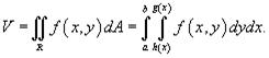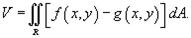, то объем цилиндрического тела между поверхностями z1 = f (x,y) и z2 = g (x,y) с основанием R равен