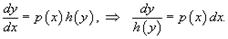 Дифференциальное уравнение первого порядка y' = f(x,y) называется уравнением с разделяющимися переменными, если функцию f(x,y) можно представить в виде произведения двух функций, зависящих только от x и y: где p(x) и h(y) − непрерывные функции. Рассматривая производную y' как отношение дифференциалов, перенесем d x в правую часть и разделим уравнение на h(y):