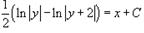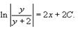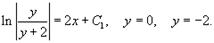 Заметим, что при делении мы могли потерять решения y = 0 и y = −2 в случае когда h(y) равно нулю. Действительно, убедимся, что y = 0 является решением данного дифференциального уравнения. Пусть Подставляя это в уравнение, получаем: 0 = 0. Следовательно, y = 0 будет являться одним из решений. Аналогично можно проверить, что y = −2 также является решением уравнения. Вернемся обратно к дифференциальному уравнению и проинтегрируем его: